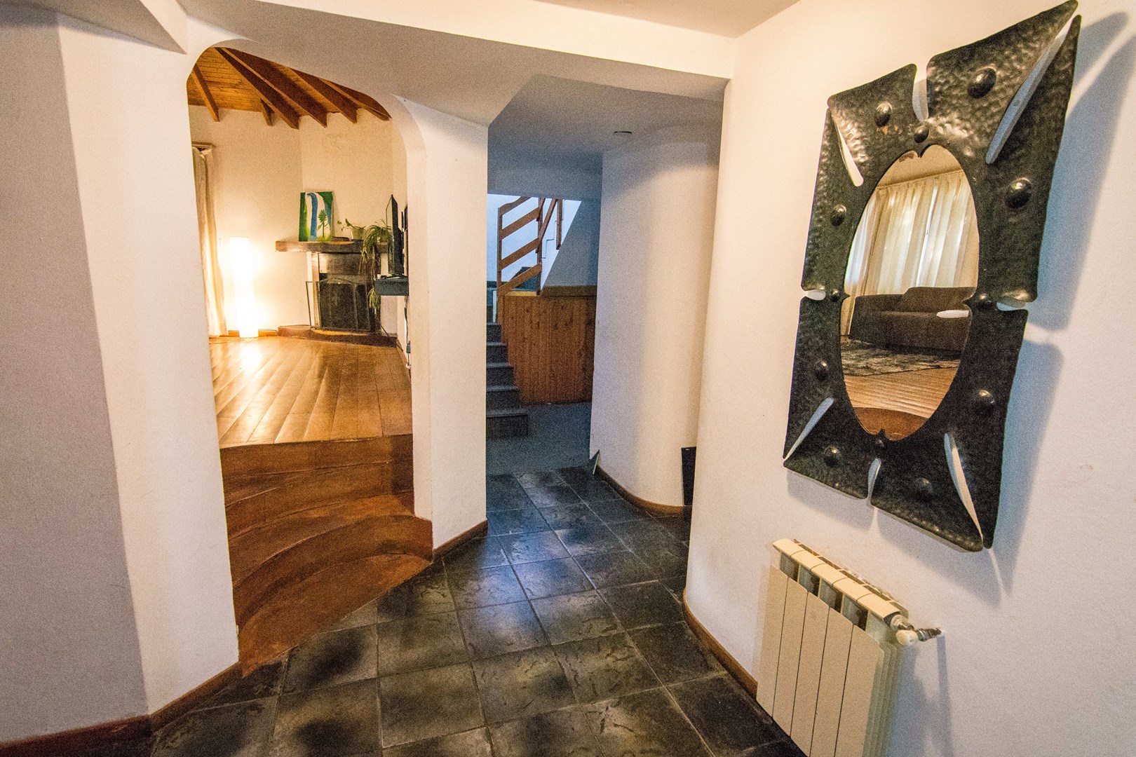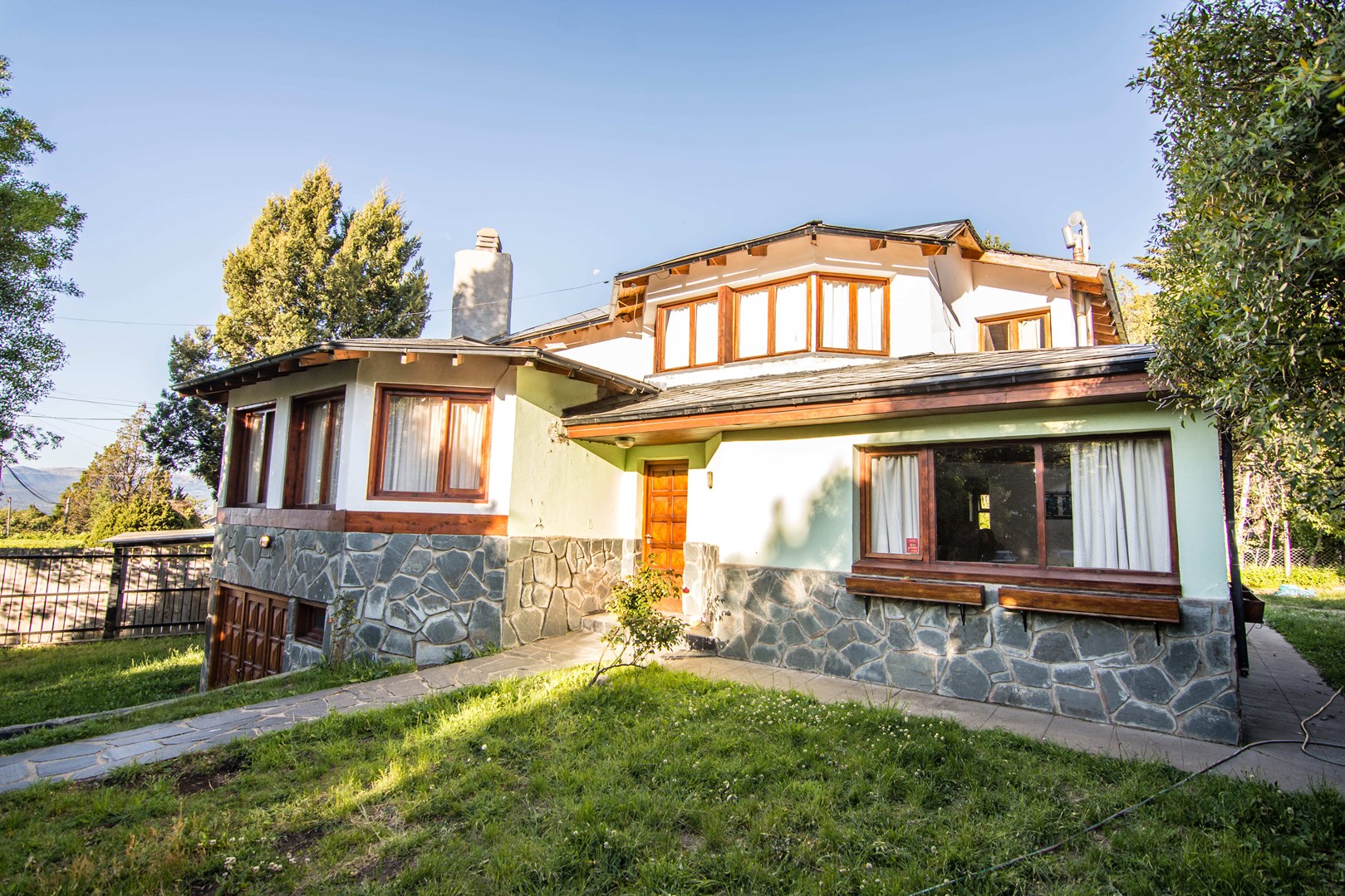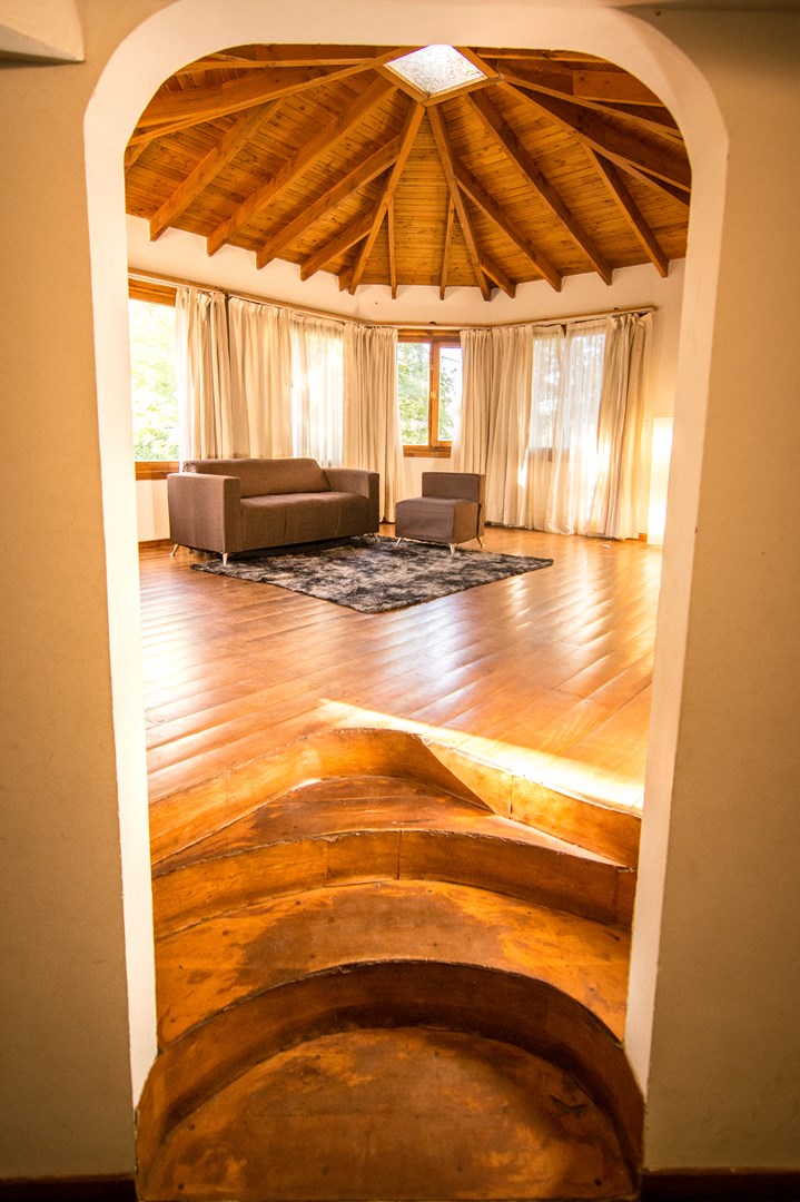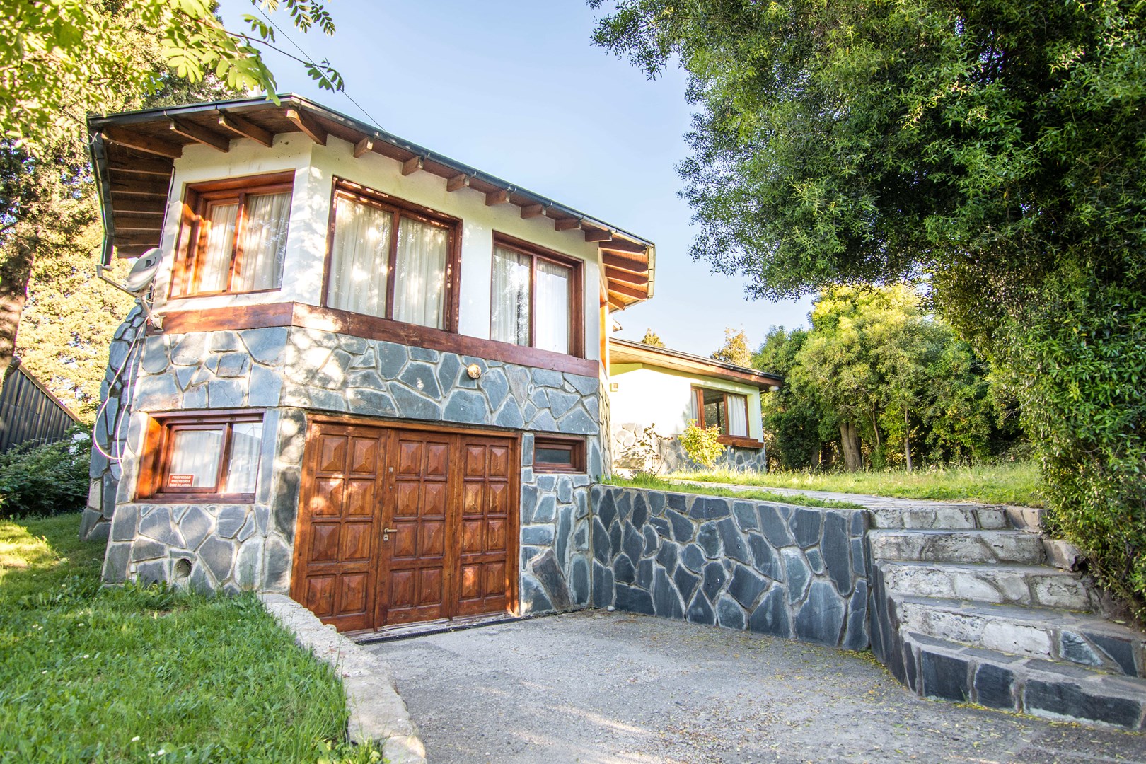 Casa en venta en Barrio Jardín Botánico – Bariloche Ubicada a minutos del centro de la ciudad, en un entorno residencial privilegiado por su cercanía al epicentro urbano y la riqueza natural del área, esta propiedad combina arquitectura de estilo, funcionalidad y confort. Construida en mampostería y revestida en piedra a la vista, típica de la arquitectura de los años 90, se encuentra en excelente estado de conservación. Distribución: Planta baja: cocina-comedor, living diario con amplios ventanales que aportan gran luminosidad, antebaño, baño completo y un elegante living principal de diseño circular con claraboya que permite apreciar el cielo patagónico. Además, acceso directo al garage, ideal para los meses de invierno. Planta alta: tres amplios dormitorios que continúan con la sofisticada arquitectura circular, un segundo baño completo y un playroom o espacio de estudio muy luminoso. La calefacción por radiadores asegura un ambiente confortable durante todo el año. Una oportunidad única para quienes buscan una vivienda sólida, con carácter arquitectónico y rodeada de naturaleza, sin resignar cercanía al centro de Bariloche. Consultanos hoy mismo y coordiná una visita. Natalia Braunstein – Martillera Pública Mat. N°092-RP-11 F°171 L°I Trato Directo Inmobiliaria